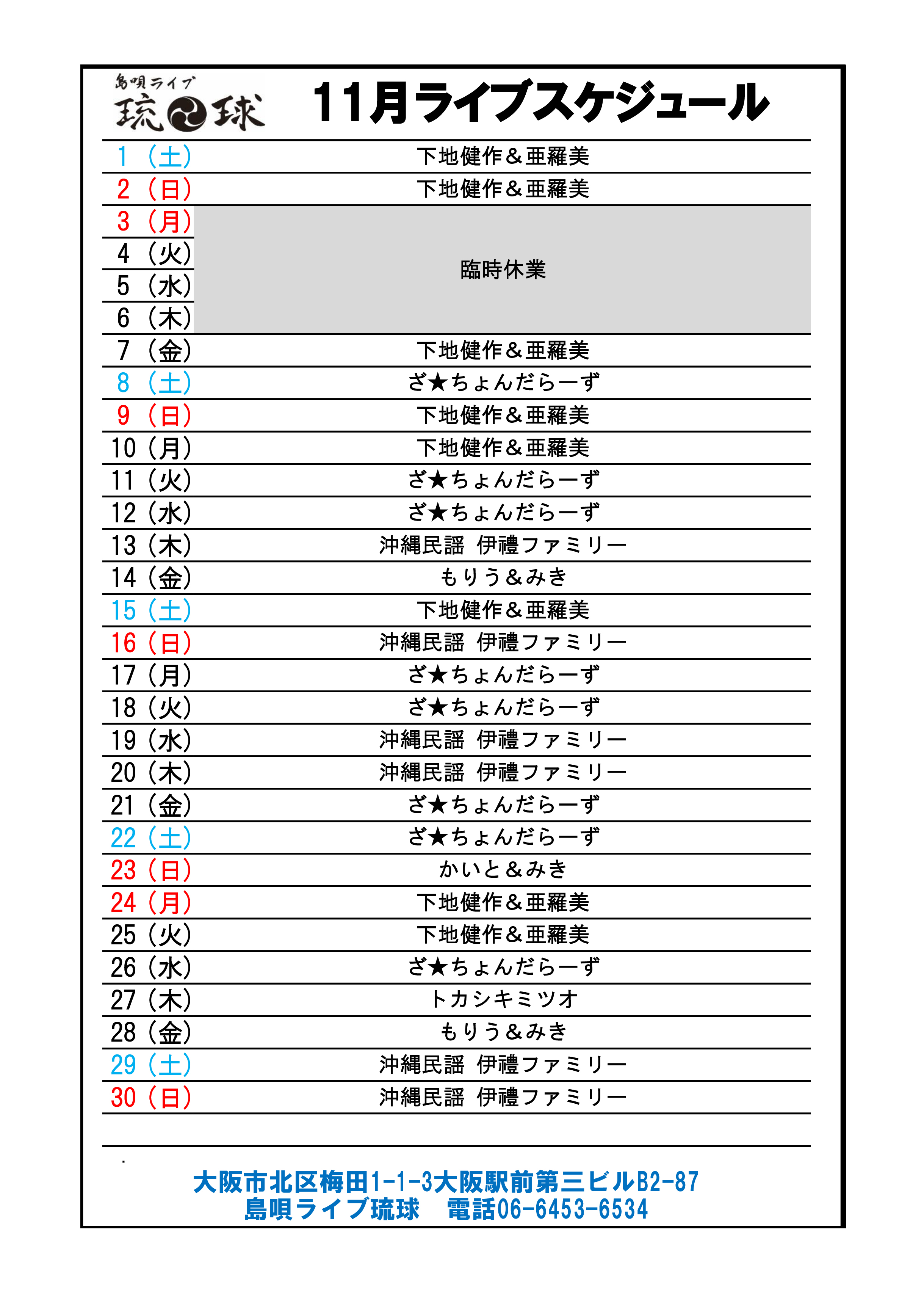 ◆2025年11月のライブスケジュール更新